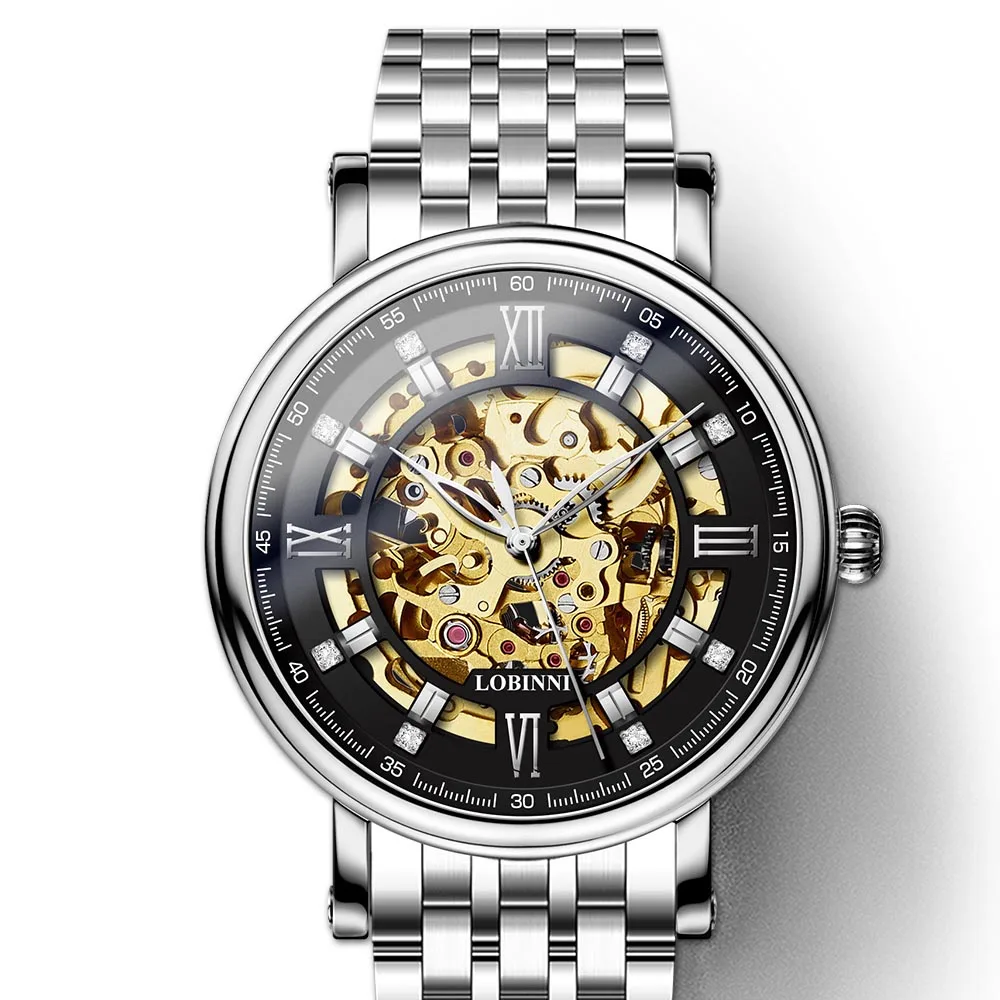 Cheap Switzerland Watches Mens Top Luxur LOBINNI MIYOTA Automatic Mechanical Watches Sapphire Skeleton Cl