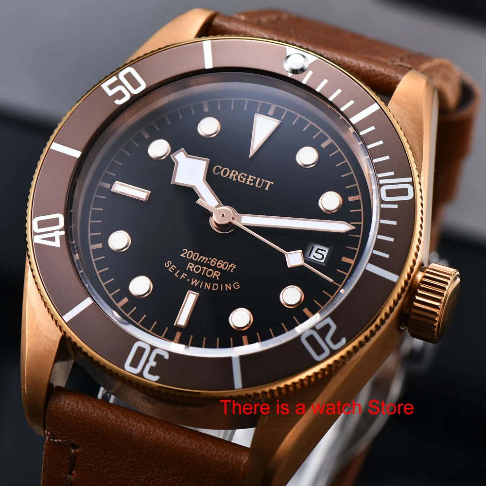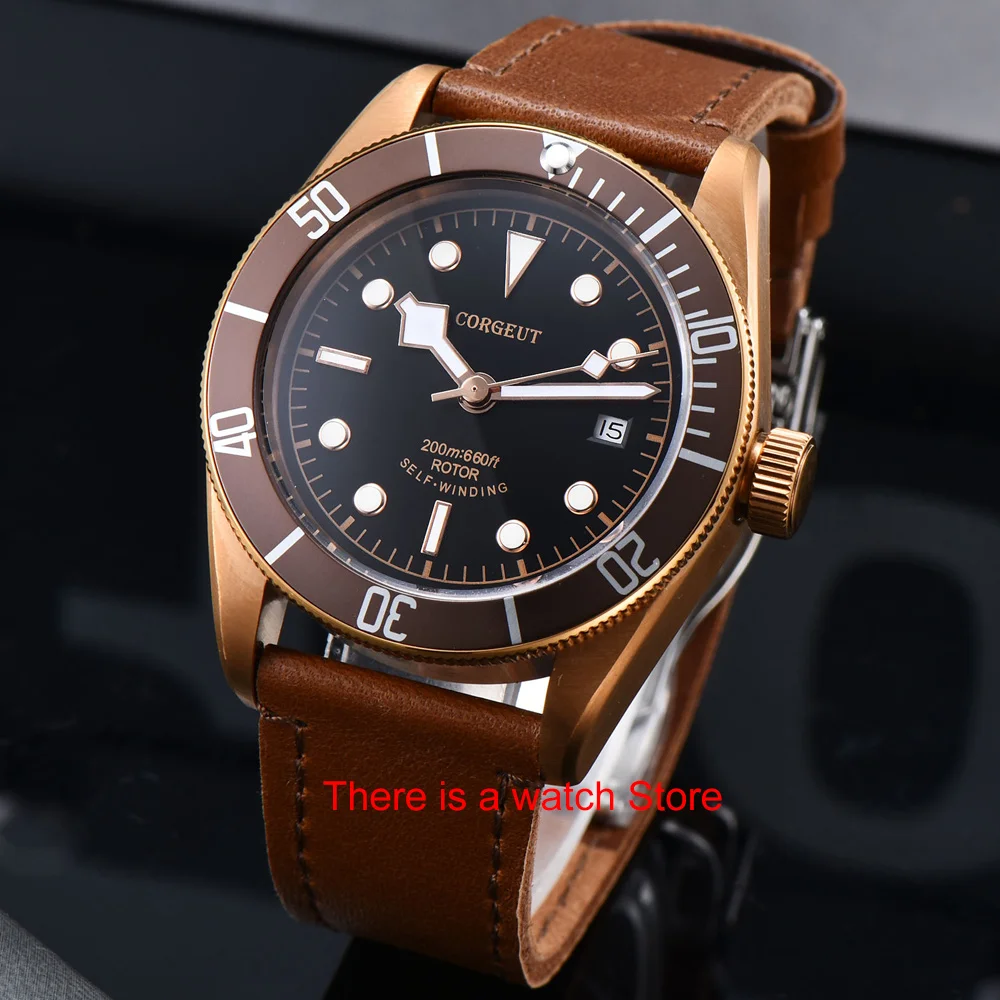 Cheap Corgeut 41mm Automatic Watch Men Military Schwarz Bay Wristwatch Leather Strap Luminous Waterproof